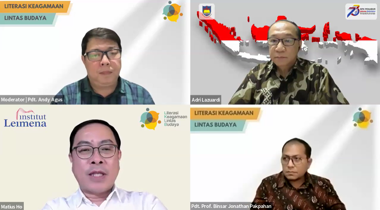 From top left to right: Special Pastor of the BPK Penabur Regional Synod Rev. Andy Agus Gunawan, General Chair of the BPK Penabur Foundation Adri Lazuardi, Executive Director of the Leimena Institute Matius Ho, and Chair of Jakarta Theological Seminary (STFT), Rev. Prof. Binsar Jonathan Pakpahan.