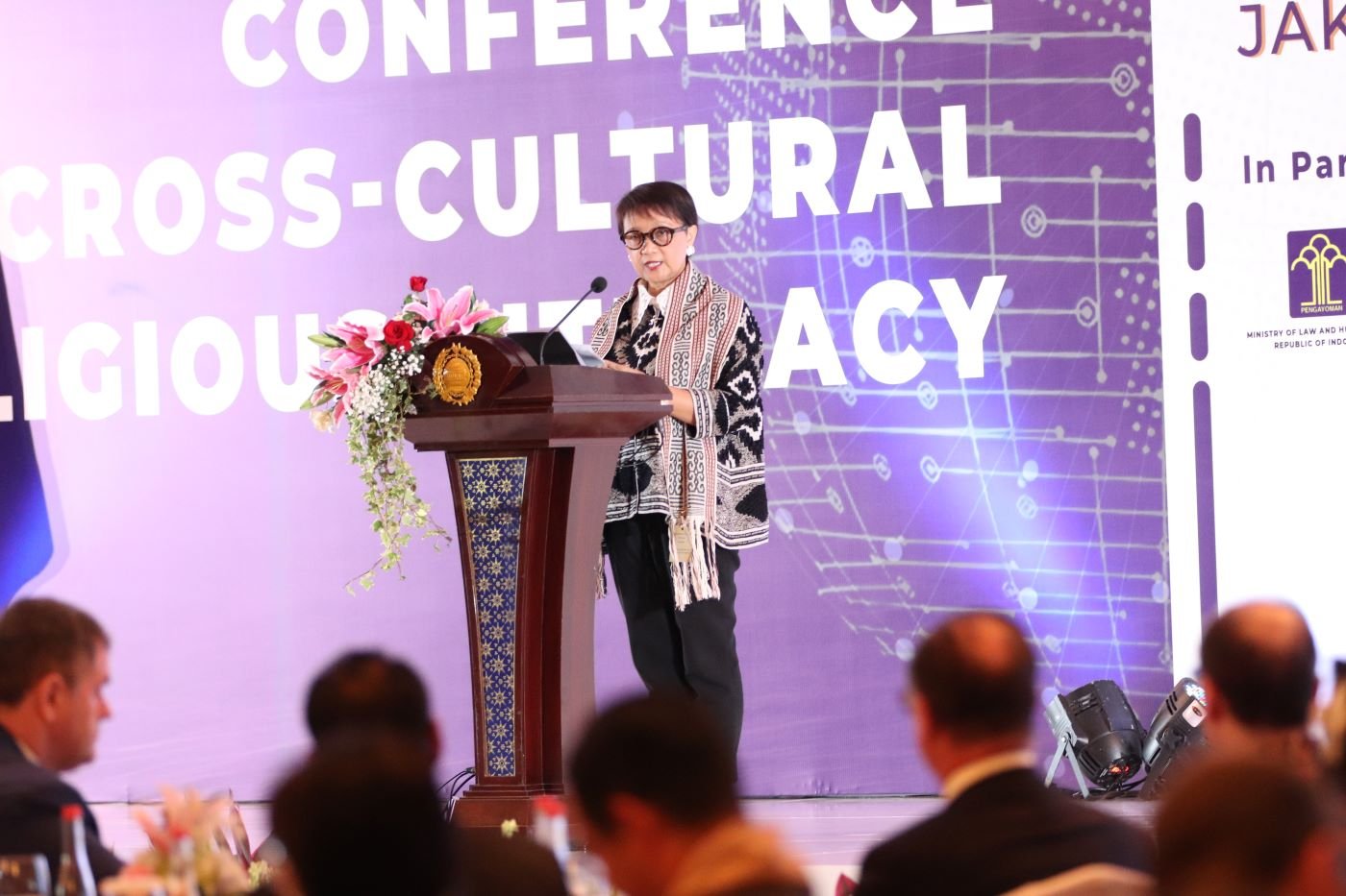 The Minister of Foreign Affairs of the Republic of Indonesia, Retno L.P. Marsudi, delivered the keynote speech at the opening session of the International Conference on Cross-Cultural Religious Literacy in Jakarta, July 10–11, 2024.