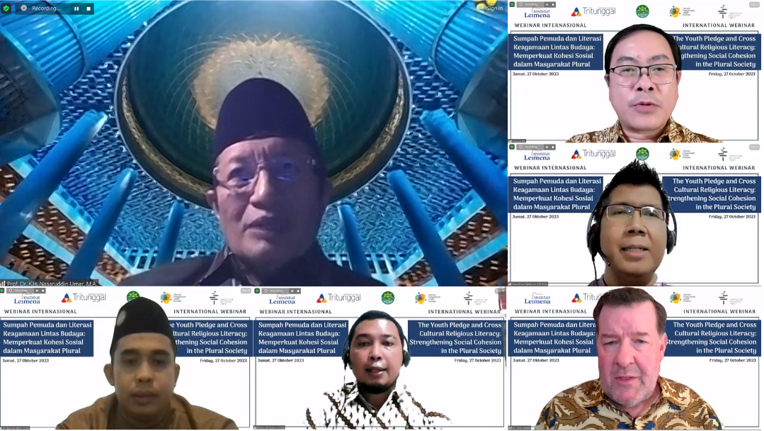 “I sincerely hope that Indonesian youth will not spend their time merely disparaging their own nation and admiring other nations. Despite all our shortcomings, we must continue to respect our own nation,” said Nasaruddin in the international webinar themed “The Youth Pledge and Cross-Cultural Religious Literacy: Strengthening Social Cohesion in a Plural Society” organized by Institut Leimena together with Central Pondok Pesantren As’adiyah Sengkang, South Sulawesi, and Tritunggal Christian School, Semarang, on Friday evening (27/10/2023).