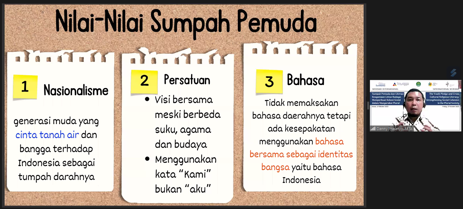 Speakers in the webinar commemorating Youth Pledge Day, organized by Institut Leimena together with Central Pondok Pesantren As’adiyah Sengkang, South Sulawesi, and Tritunggal Christian School, Semarang.