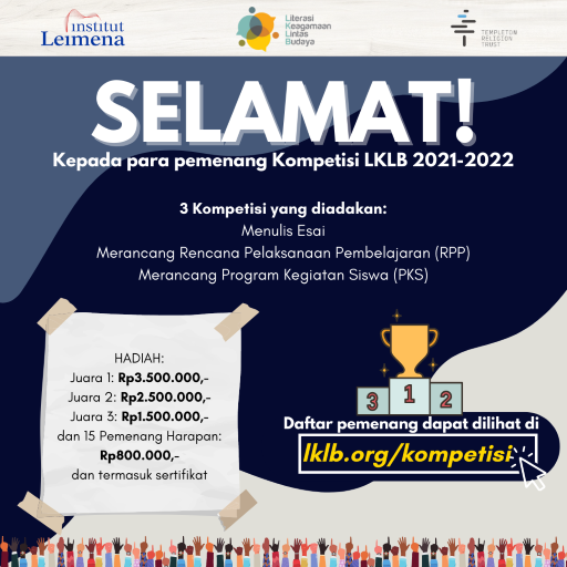 Jakarta, LKLB News – Program Literasi Keagamaan Lintas Budaya (LKLB) telah menjadi inspirasi para guru alumni LKLB untuk menghasilkan sejumlah karya kreatif yang mendukung proses pembelajaran di dalam kelas. Partisipasi aktif para guru alumni LKLB terlihat dari terkumpulnya 437 karya kompetisi dari 363 peserta yang ikut serta dalam 3 kategori kompetisi yaitu menulis esai, merancang rencana pelaksanaan pembelajaran (RPP), dan merancang program kegiatan siswa.