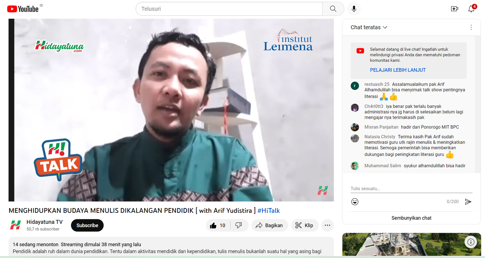 Alumni LKLB Angkatan 12 yang juga seorang kolumnis, Arif Yudistira (atas), dan alumni LKLB Angkatan 7, Dr. Ririn Eva Hidayati, mendapatkan respons positif dari audiens saat live talkshow HiTalk.