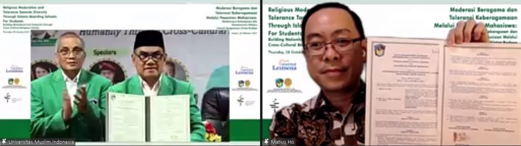Hal tersebut menjadi intisari dari Webinar Internasional Memperingati Hari Sumpah Pemuda hasil kerja sama Universitas Muslim Indonesia (UMI) dan Institut Leimena dengan tema “Moderasi Beragama dan Toleransi Keberagaman Melalui Pesantren Mahasiswa: Membangun Kebangsaan dan Kemanusiaan Melalui Literasi Keagamaan Lintas Budaya (LKLB)” yang diadakan Kamis (28/10/2021).