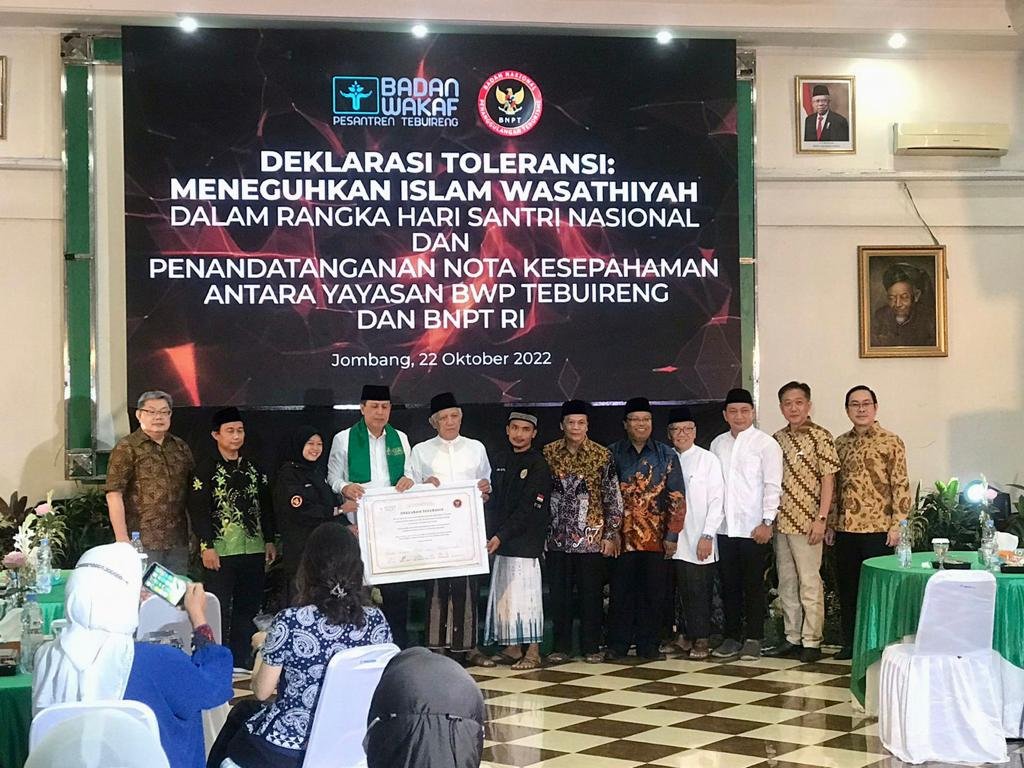 Penandatanganan Deklarasi Toleransi antara BWPT dan BNPT di Pondok Pesantren Tebuireng, Jombang, pada 22 Oktober 2022, yang dihadiri juga oleh Direktur Eksekutif Institut Leimena, Matius Ho.