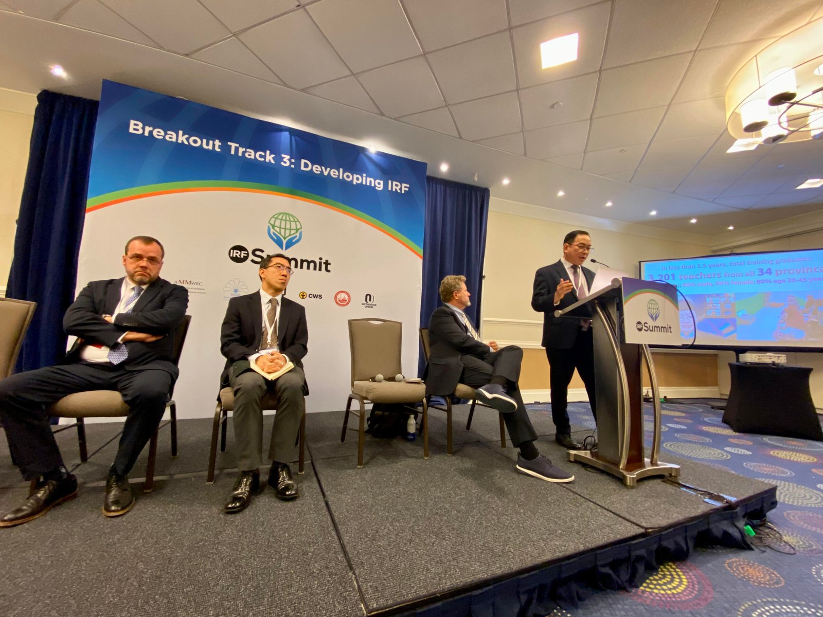 Matius Ho bersama dua panelis lain yaitu Vice President of Global Operations Institute for Global Engagement (IGE), James Chen, dan Presiden Love Your Neighbor Community (LYNC), Wade Kusack, berbicara dalam breakout track session bertajuk “Developing IRF: Cross-Cultural Religious Literacy Program” (Mengembangkan Kebebasan Beragama Internasional: LKLB).