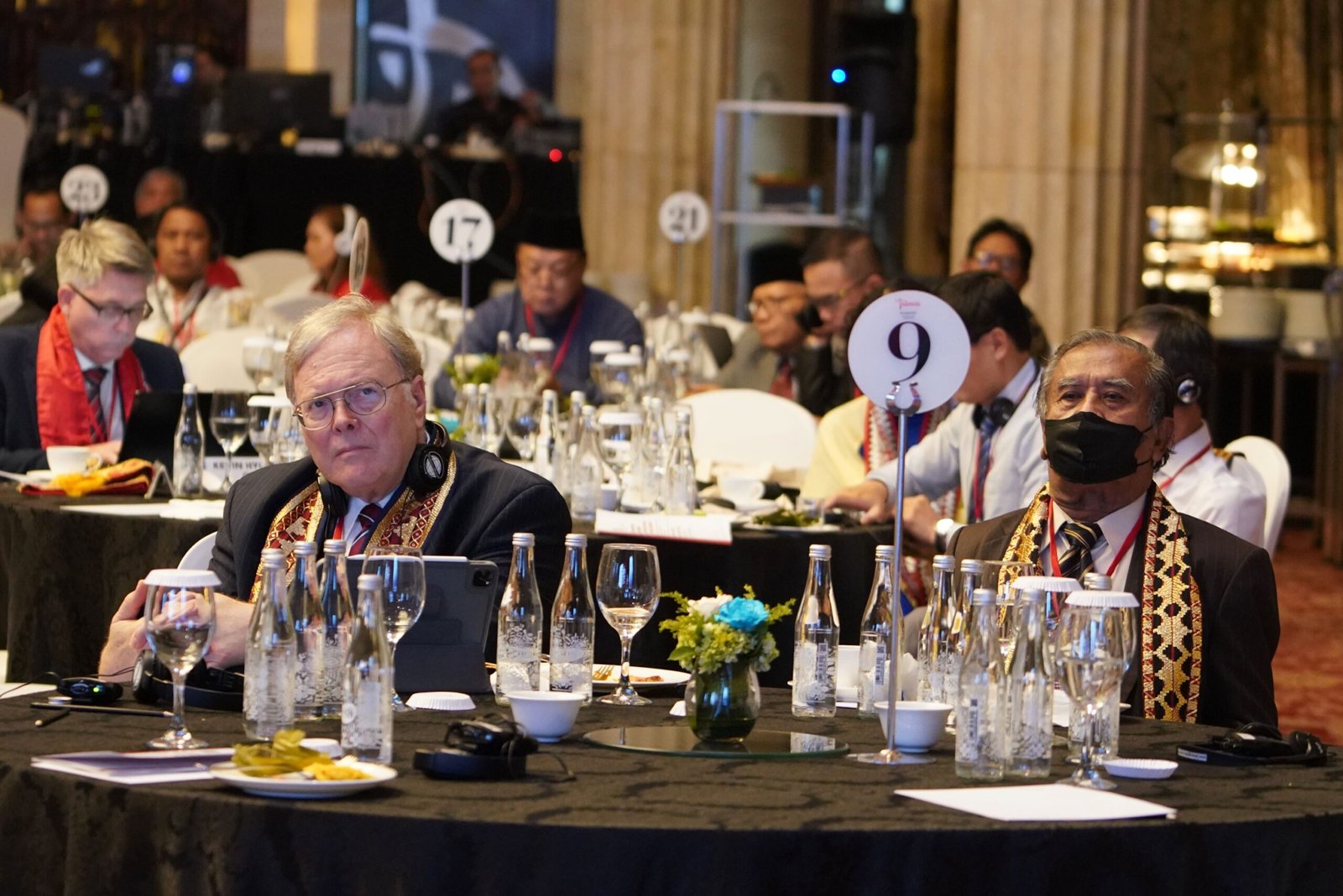President of G20 Interfaith Forum Association, Cole Durham, Jr., and Senior Fellow of Leimena Institute as well as one of Indonesia’s first constitutional judges, Maruarar Siahaan, listening to the speakers’ presentations.