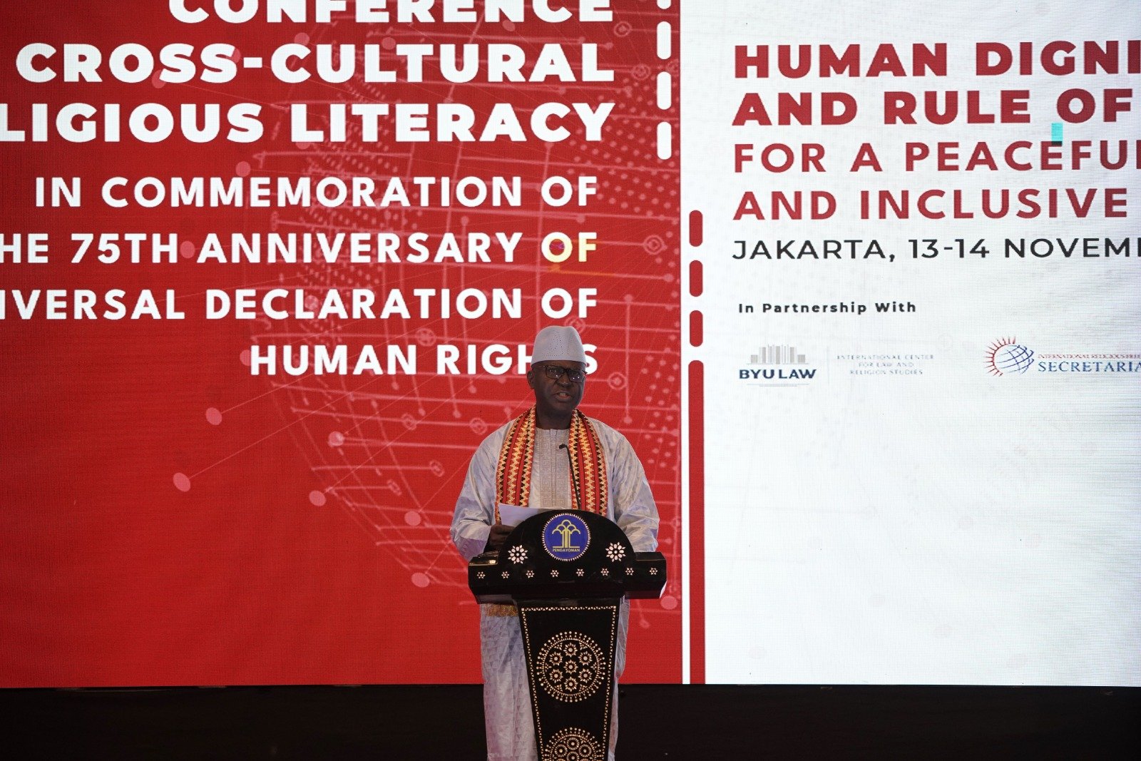 The International Conference on Cross-Cultural Religious Literacy (CCRL), held at the Kempinski Hotel Jakarta on 13–14 November 2023, featured international speakers, including Vice President of the United Nations Human Rights Council, Muhammadou Kah.