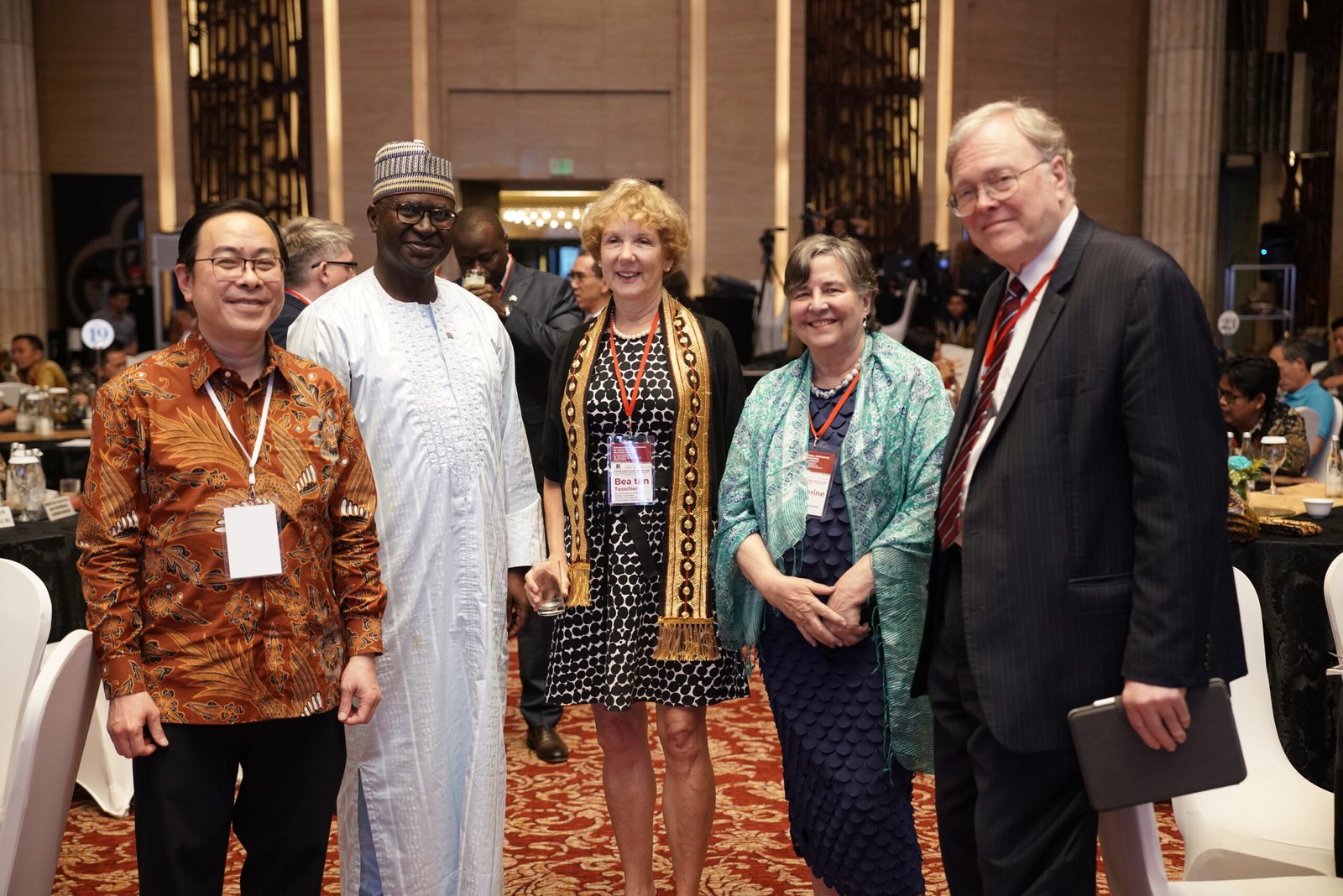 From left to right: Executive Director of the Leimena Institute, Matius Ho; Vice President of the UN Human Rights Council, Muhammadou M.O. Kah; Special Envoy for Freedom of Religion and Belief of the Ministry of Foreign Affairs of the Kingdom of the Netherlands, Bea ten Tusscher; Executive Director of the World Faiths Development Dialogue, Katherine Marshall; and President of the G20 Interfaith Forum Association, Cole Durham, Jr.